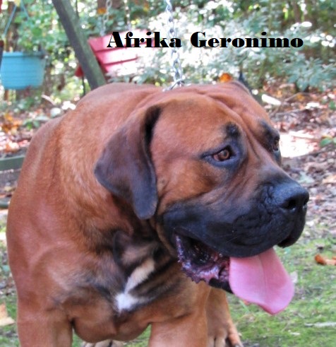 | Afika Burkie is the dam of Afrika Geronimo she is owned by Afrika kennels in South Africa call Bev if interested 804-633-9612 |