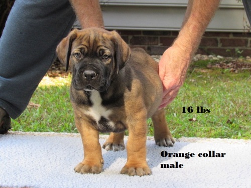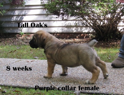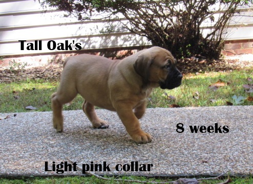 | light Pink collar female pictured at 8 weeks 24 lbs. she is available She has such a beautiful face ,very typey girl. email if interested in her talloakskennels@gmail.com |