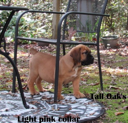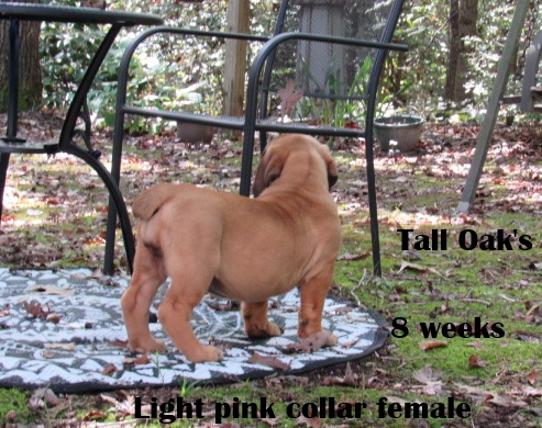 | Light Pink Collar female really nice topline and tail set she is available email talloakskennels@gmail.com |