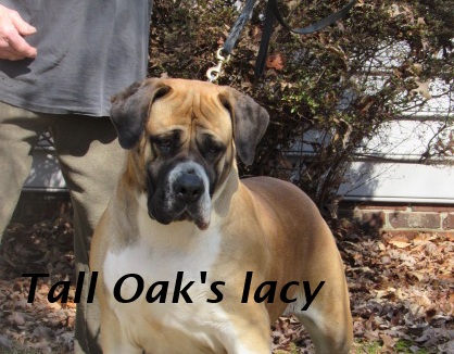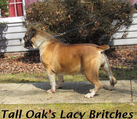 | Tall Oak's Lacy Britches sire Tall Oak's Chase The Dream Dam Tall Oak's Sloan . She is bred to Afrika Geronimo due March 28,2026 call 804-633-9612 |