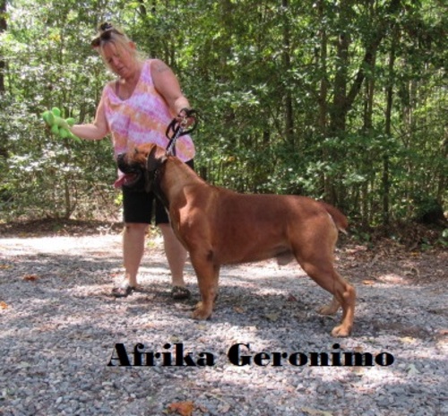 | Afika Burkie is the dam of Afrika Geronimo she is owned by Afrika kennels in South Africa call Bev if interested 804-633-9612 |